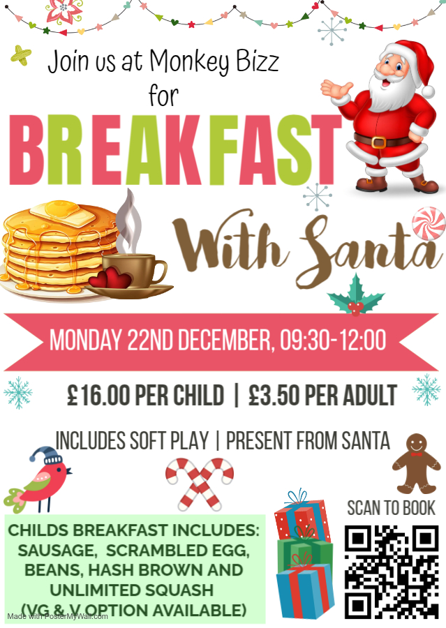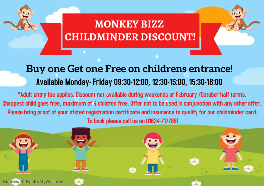 We look forward to welcoming you to Monkey Bizz where our 2 ½ hour sessions run 7 days a week.